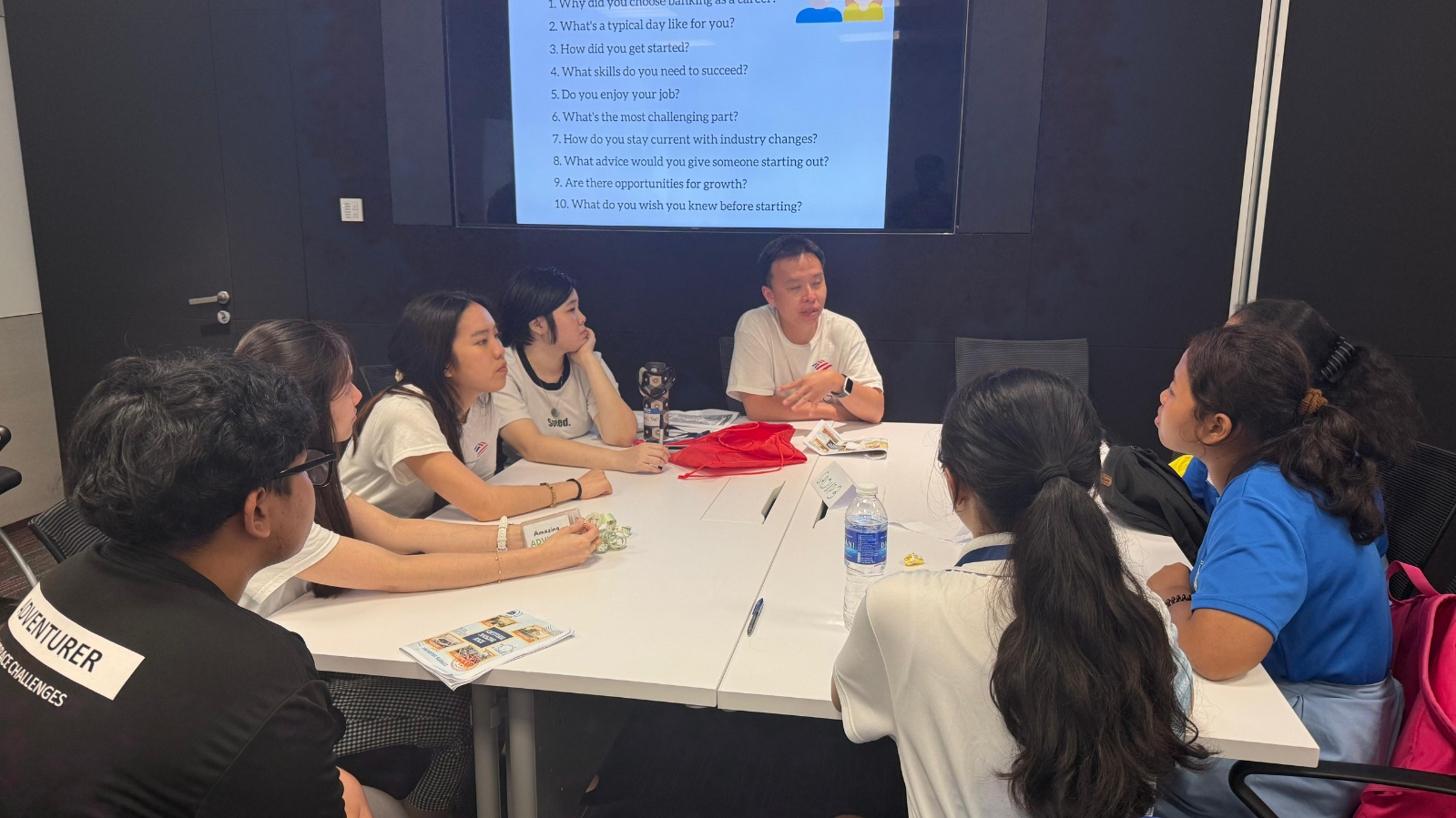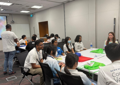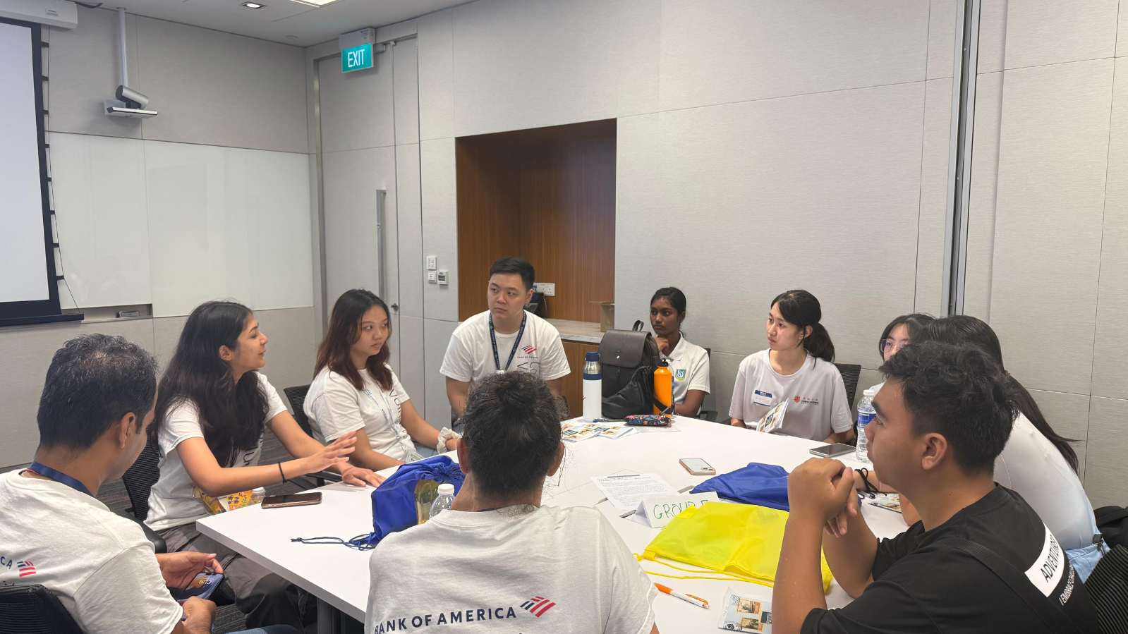 Our youth participants worked in teams to solve puzzles and tackle challenges at iconic landmarks around the Central Business District (CBD) and Marina Bay areas, showcasing their creativity and teamwork. Following that, a career sharing session by volunteers from the Bank of America was held, where staff shared inspiring stories and insights into the finance industry, sparking curiosity about potential career paths.