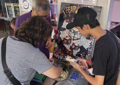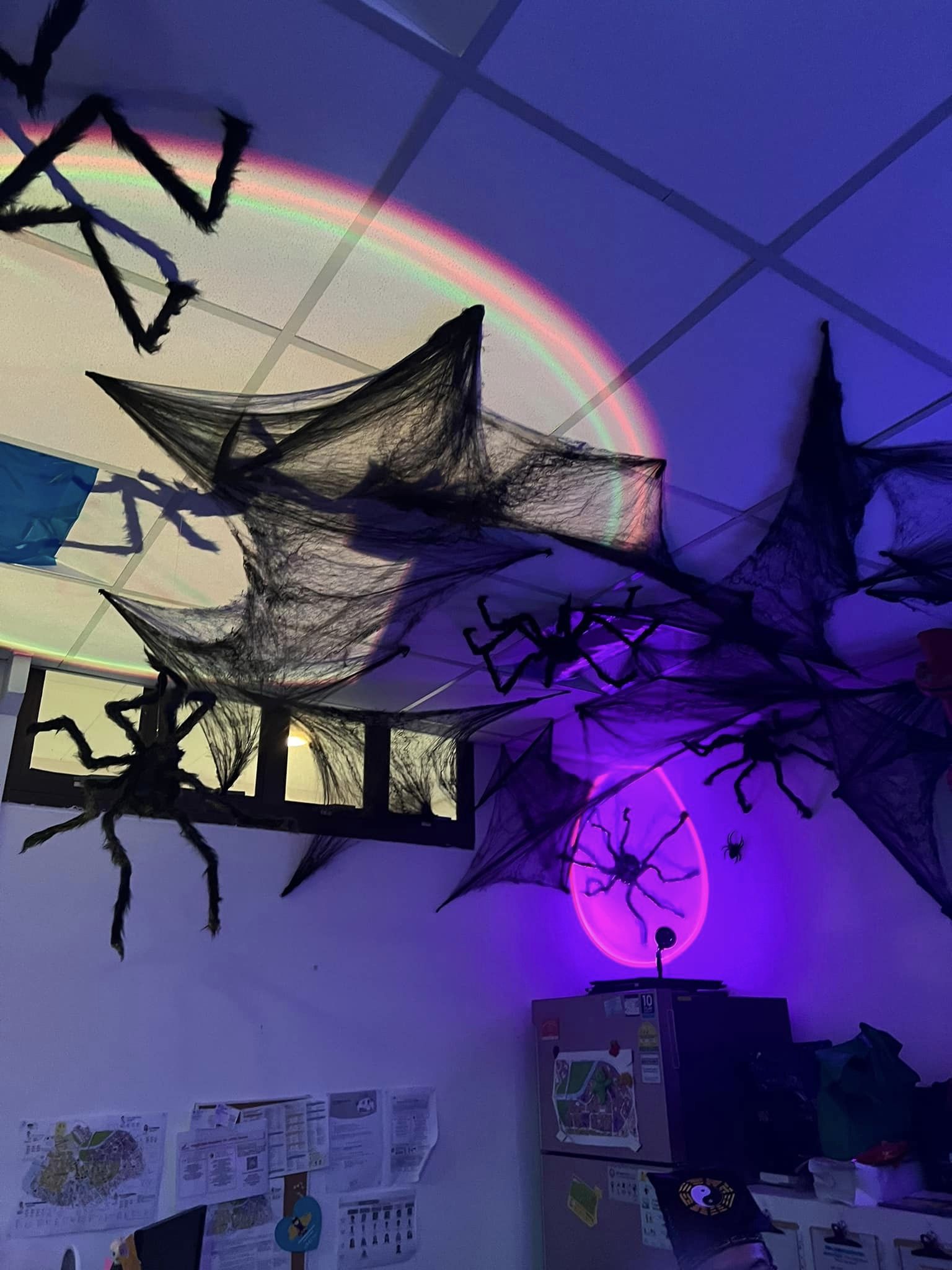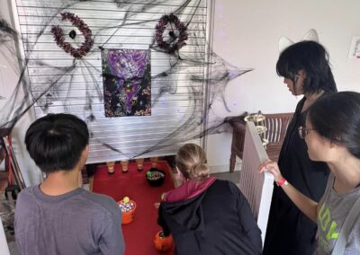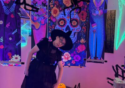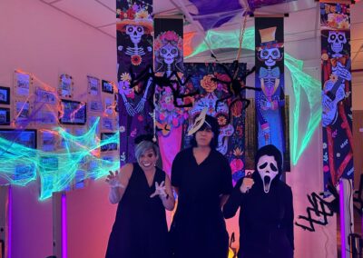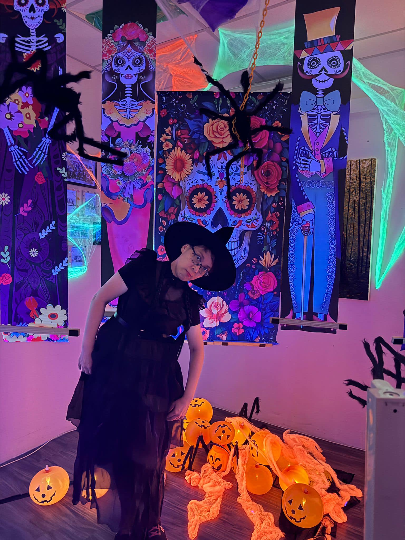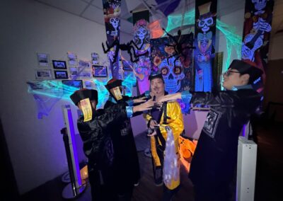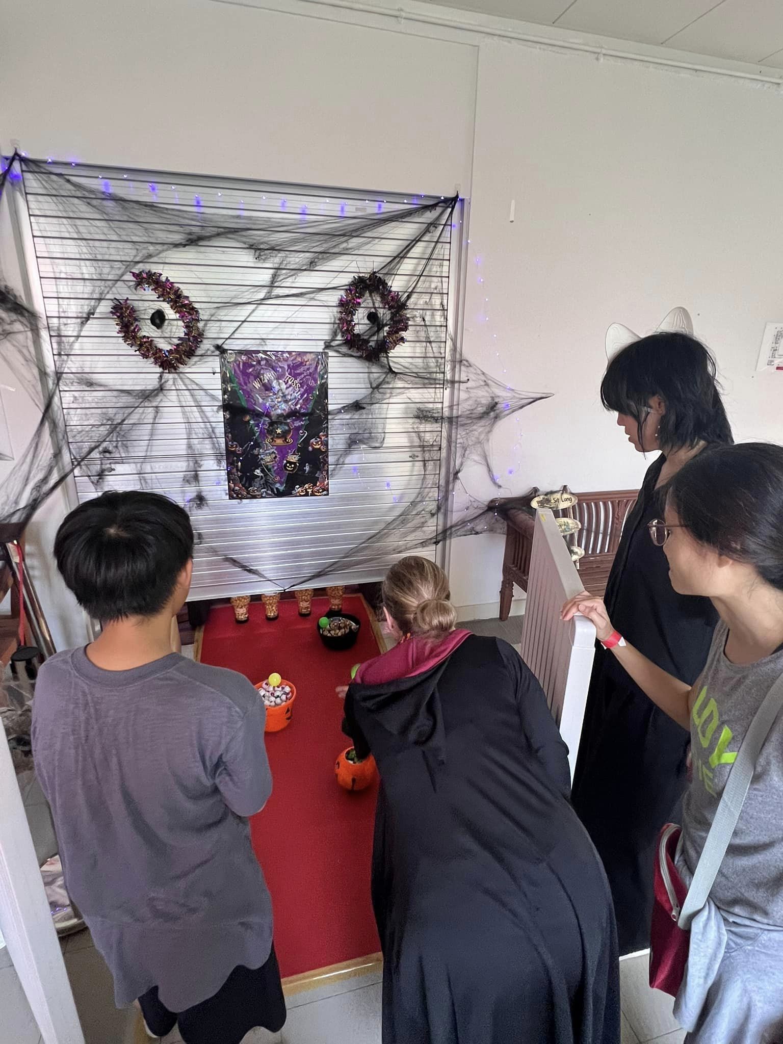 Staff and volunteers dressed as spooky movie characters, creating an eerie atmosphere with neon lights and vibrant horror-themed decorations. The use of dry ice created a haunting fog, while the faint scent of rose water added a sweet yet unsettling touch, heightening the spooky ambiance.