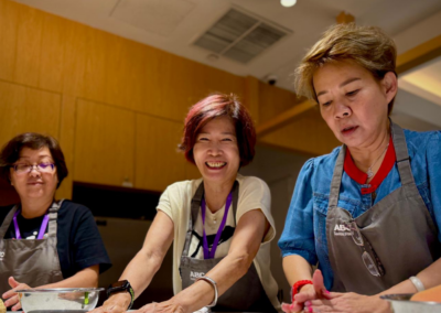 Last Friday, our MacPherson seniors headed down to ABC Studio at Funan Mall to attend a baking class, to learn the art of bread-making under the GUI program and to come up with their own gastronomical creations. Under the guidance of the trainers, participants learnt how to knead dough, mix ingredients, and shape batter, experiencing first-hand the process of baking.