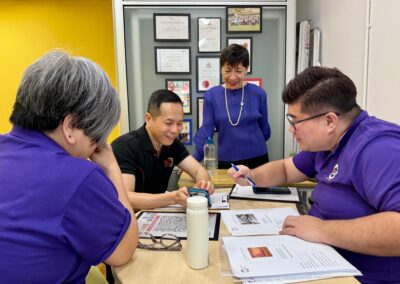 Currently, she teaches a class called “Brain and Body” every week at the Tampines branch center. By combining simple hand and body movements with educational games, she hopes to help the elderly participants in the course to exercise their brain and body coordination.