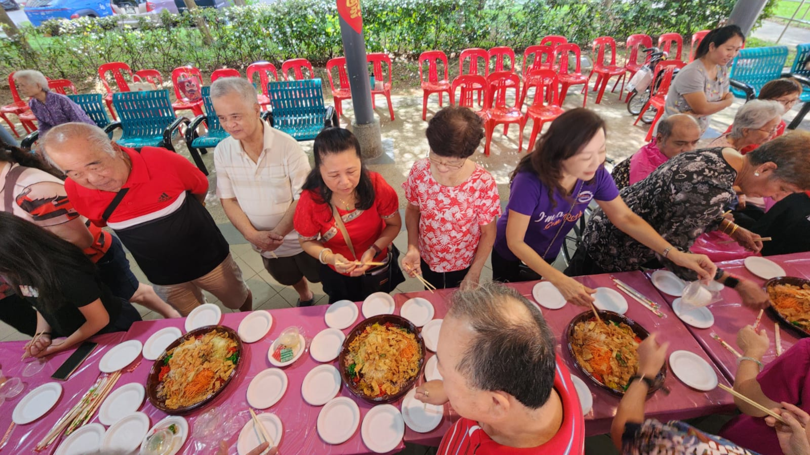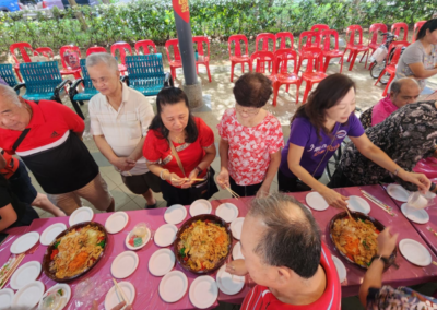 In MacPherson, our seniors spent an eventful afternoon afternoon full of Chinese New Year blessings, gifts, and bonding sessions with our volunteers, interns, and staff members, getting to participate in a tossing of lo hei and partaking in mouthwatering food prepared by our volunteers. Participants also received sponsored vouchers in the form of red packets, as a form of wishing them abundance in their lives.