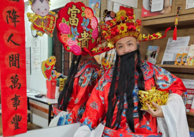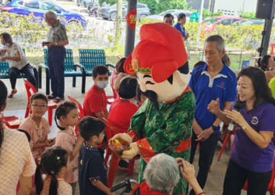 As for Simei, our seniors attended the Simei RC-4 lunar new year celebration, which consisted of several highlights: a lion dance performance, a singalong segment led by our own participants, as well as a God of Fortune (财神爷) gracing participants with well-wishes. Advisor Jessica Tan also attended the event as its Guest-of-Honour, supporting the festivities and overseeing its activities.